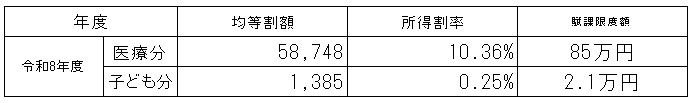 令和8年度の和歌山県の被保険者均等割額、所得割率は以下のとおりです。